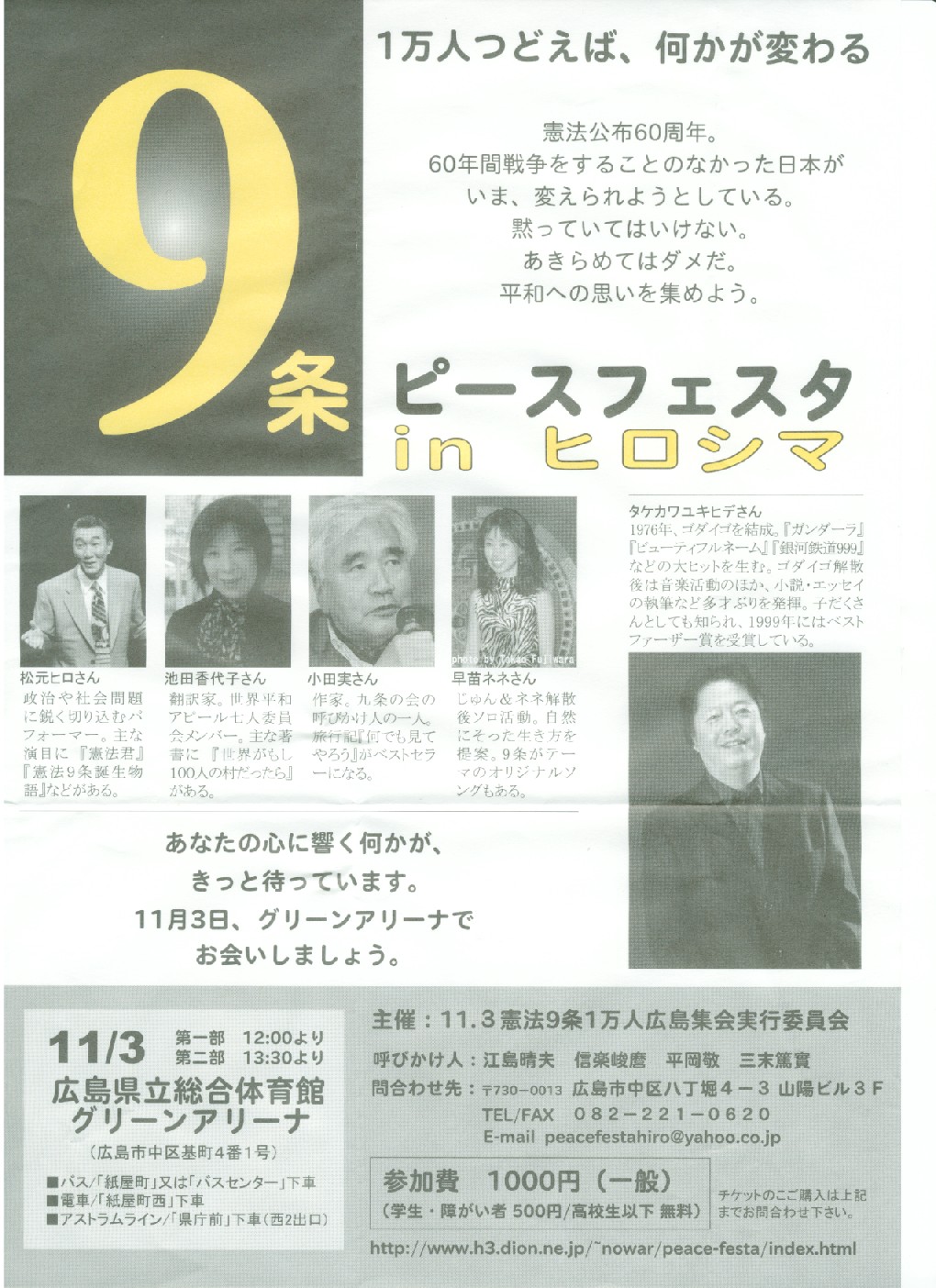 主催:11.3憲法集会実行委員会、広島県9条の会(入場整理券・999円)