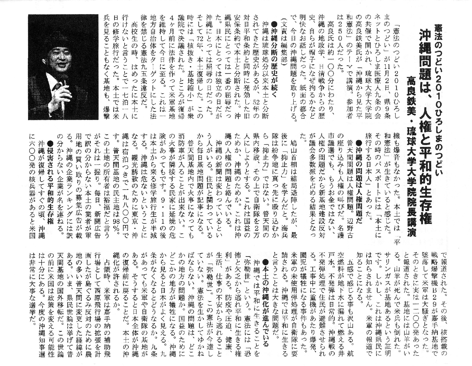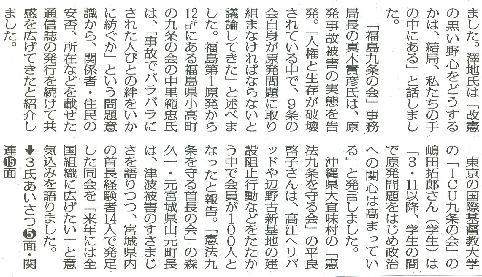 「守ろう9条 音楽と講演の集い」 講演要旨
