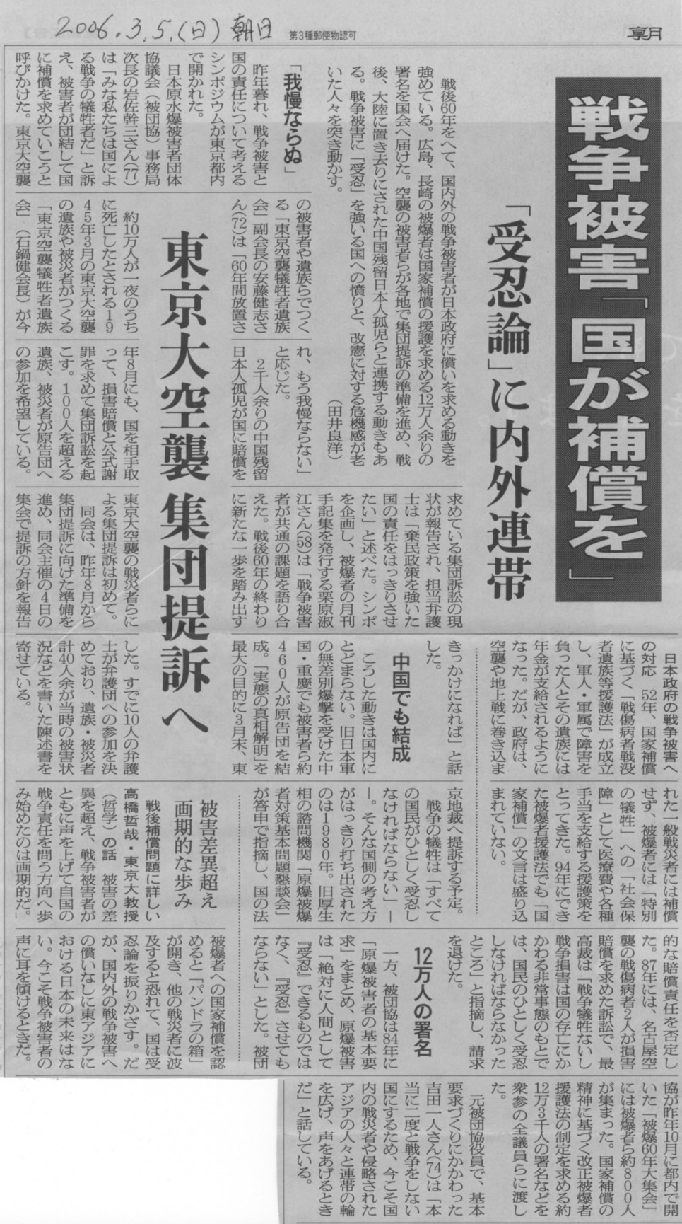 3、戦争被害「国が補償を」 「受忍論」に内外連帯
