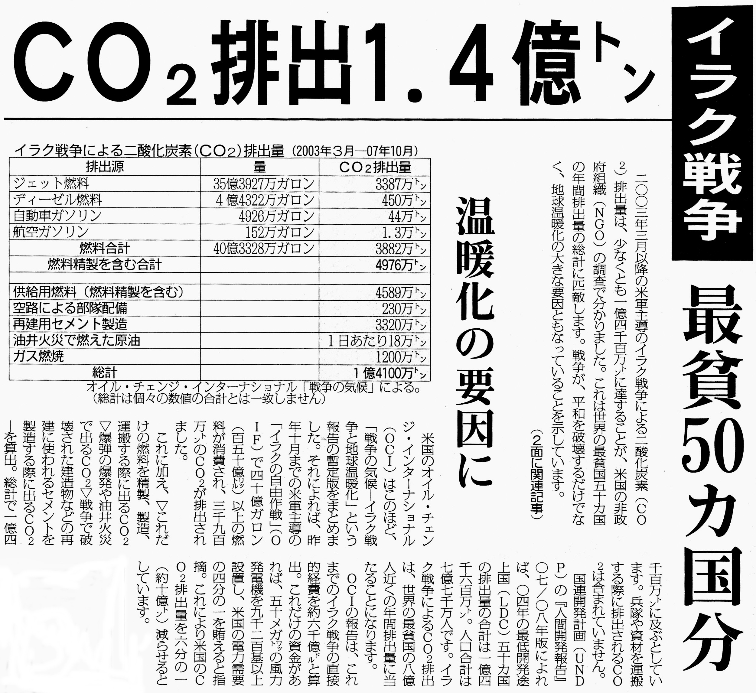 CO2排出量=1.4 億トン =最貧国50ヵ国分に相当=地球温暖化の要因に