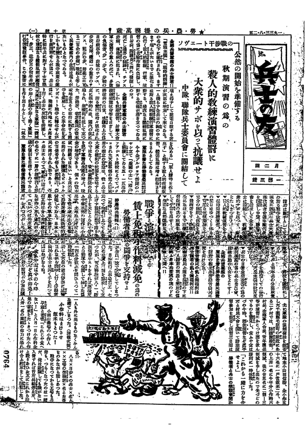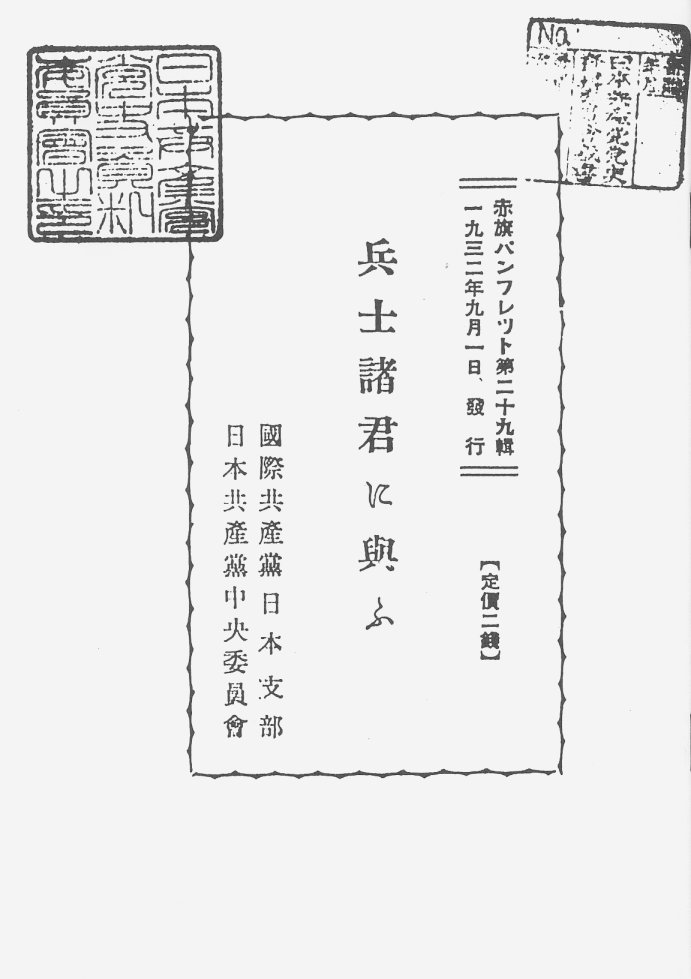 日本共産党が対軍隊工作のために1932(昭和7)年9月1日に出したパンフレット。