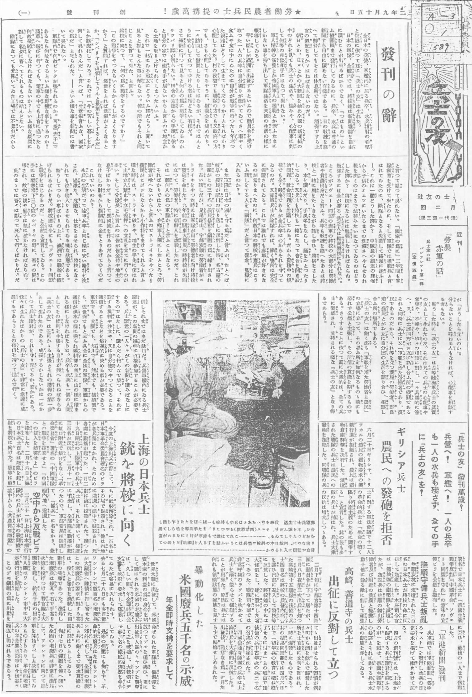 5、『兵士の友』(1932(昭和7)年9月15日の創刊)