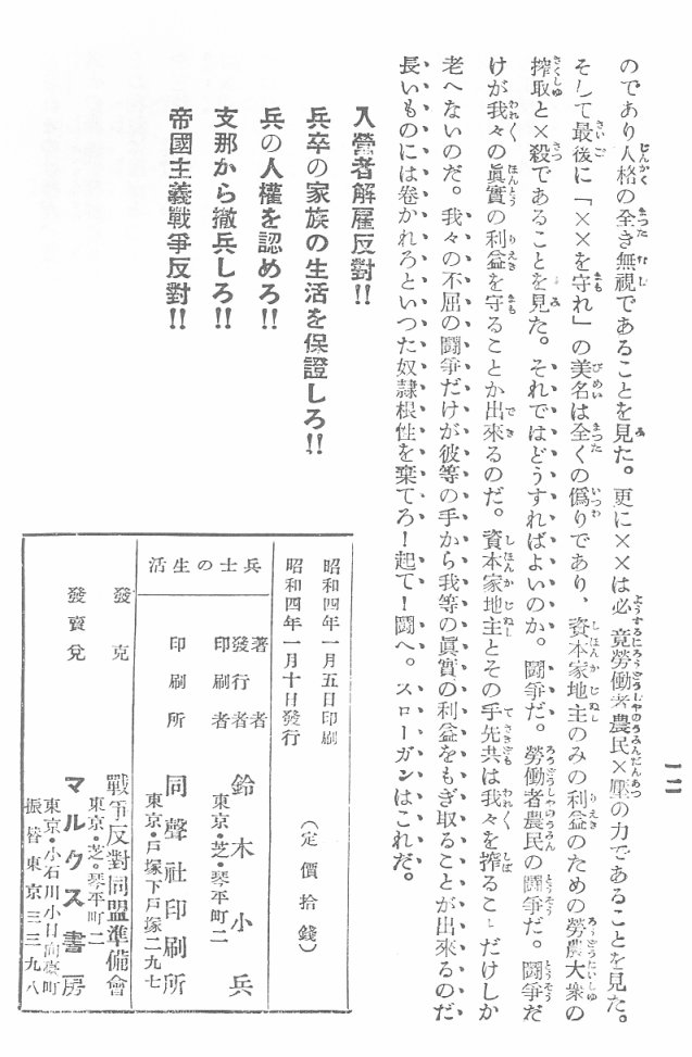 1、反戦パンフ『兵士の生活』