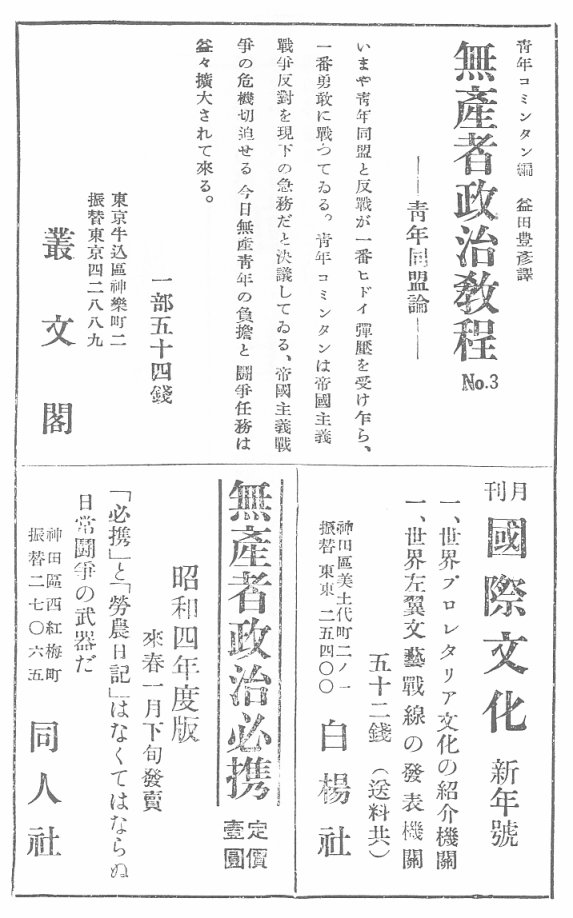 (戦争反対同盟準備会編、1929年10月刊)