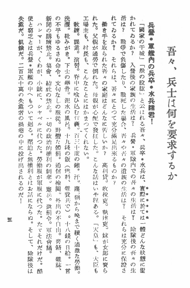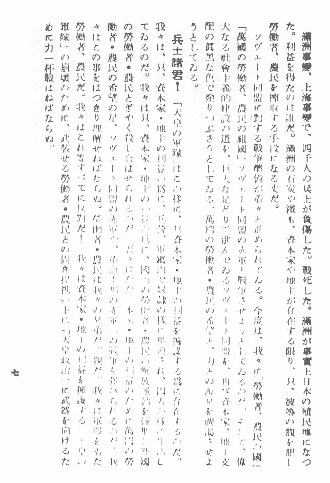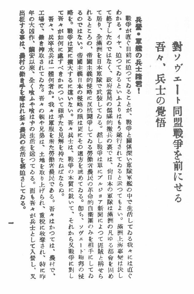 3、赤旗パンフレット『兵士諸君に与ふ』 (1932年9月1日)