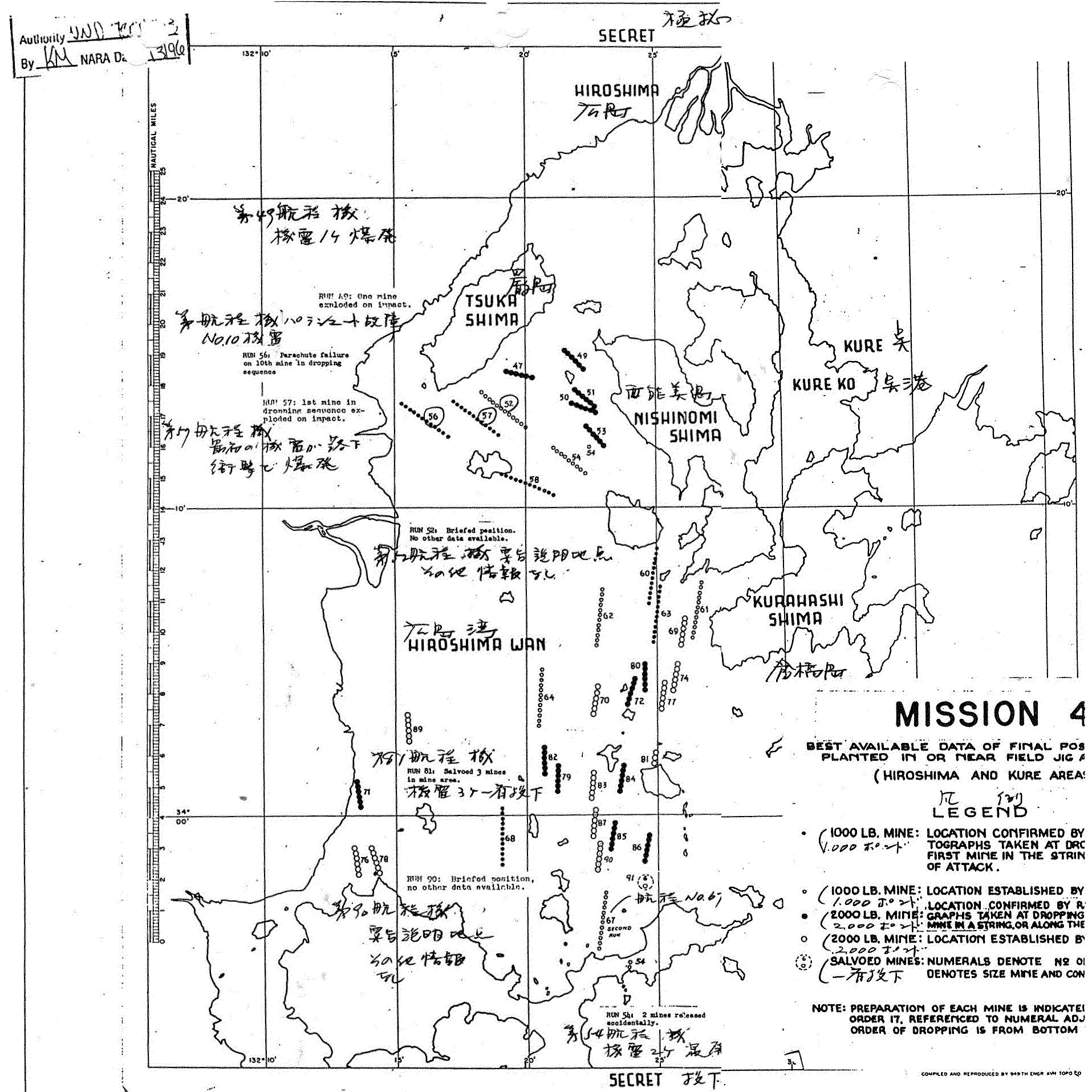 もし日本の海軍部隊を呉地域内に今後長く封じ込める計画を意図するのであれば、この投下海域「アイテム」の機雷投下作戦を増強することを勧告する。
