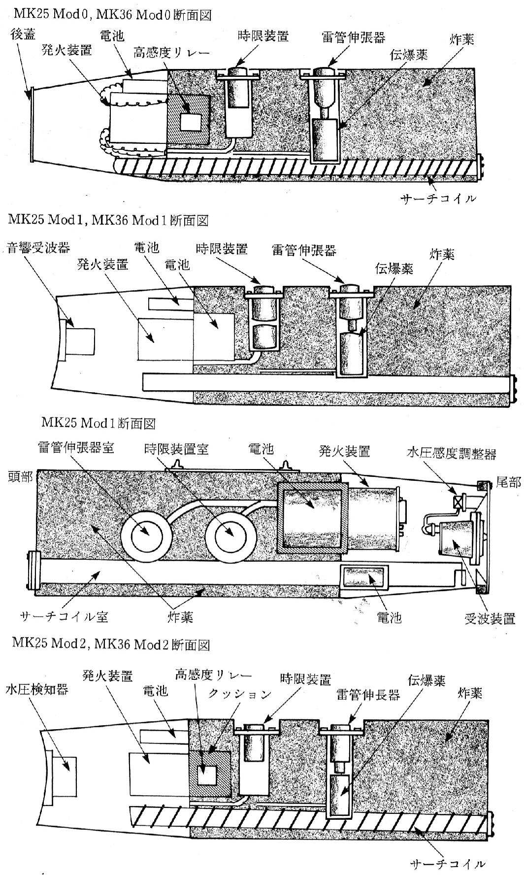 炸薬装填口 雷管伸張器MK25及びMK36機雷(寸法は異るが外形は同じ