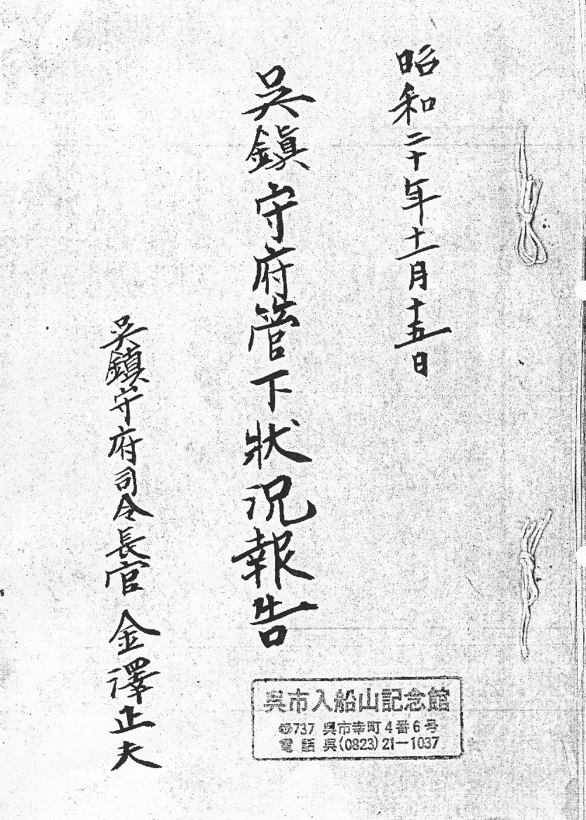 呉鎮守府管下状況報告(呉市入船山記念館蔵)