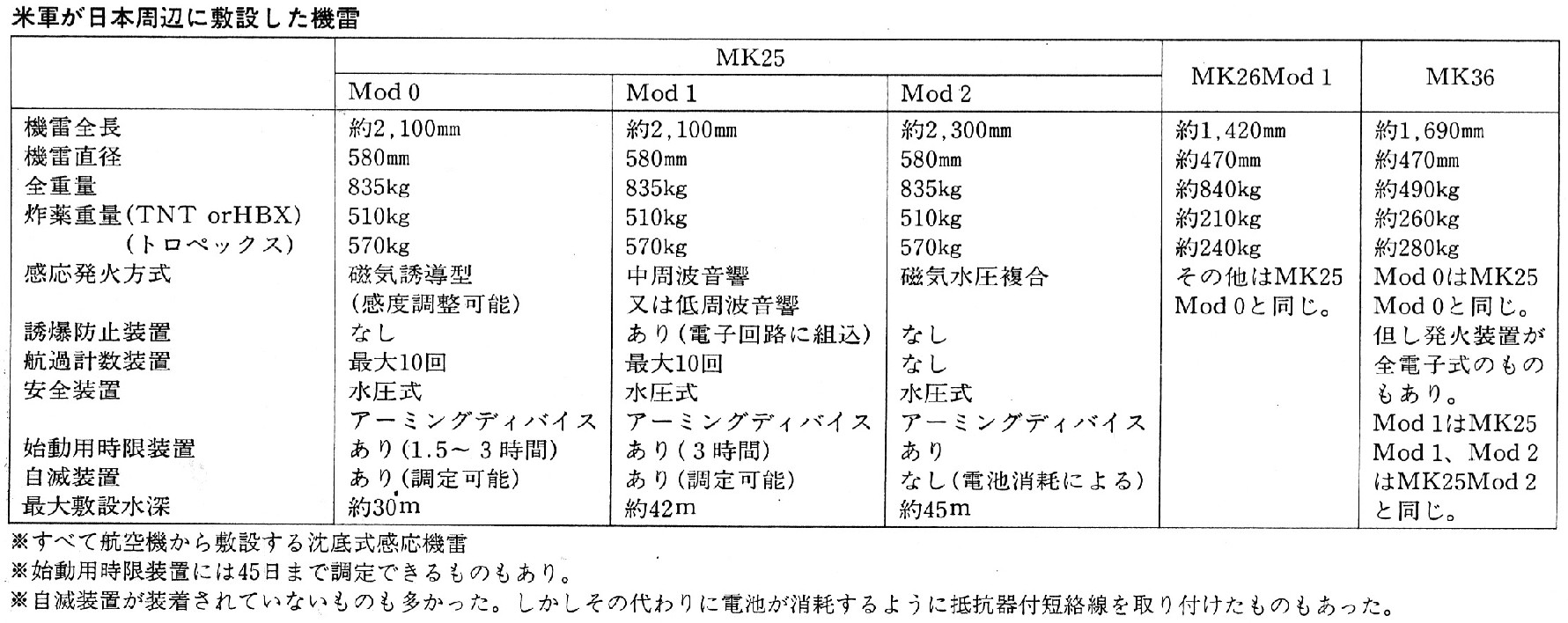 有効な対抗策を講じられなかった機雷は、磁気・水圧複合感応のマーク25モードと、
