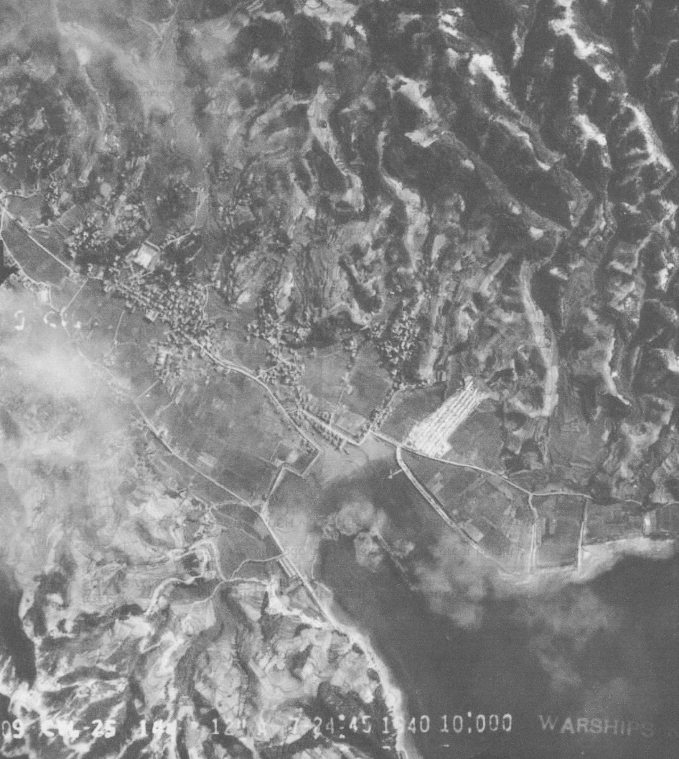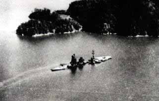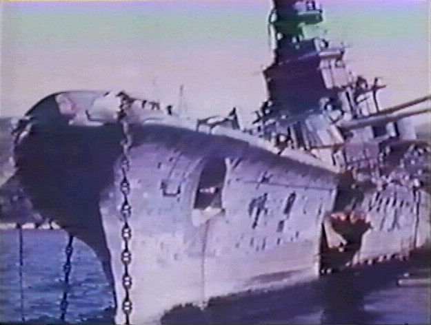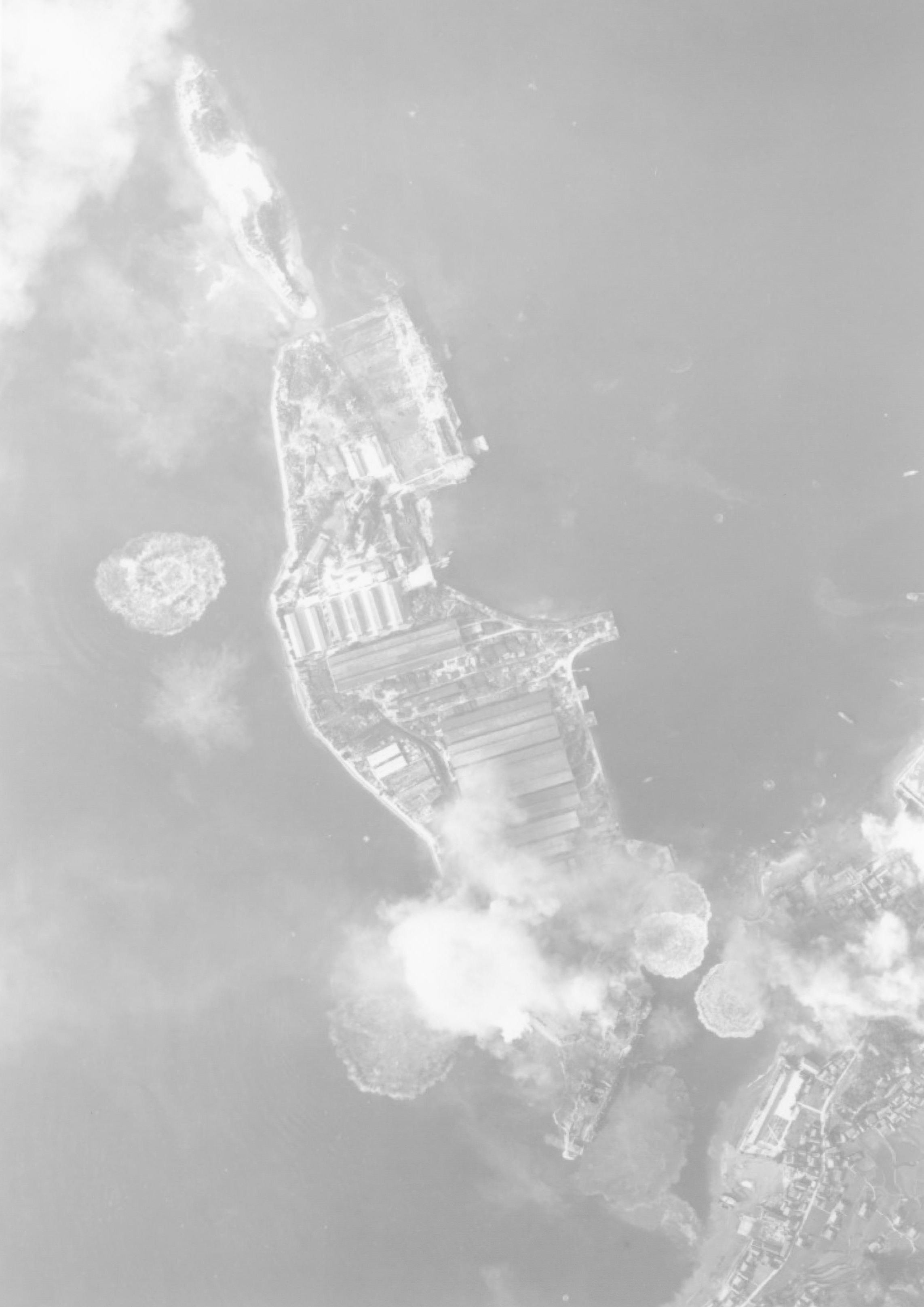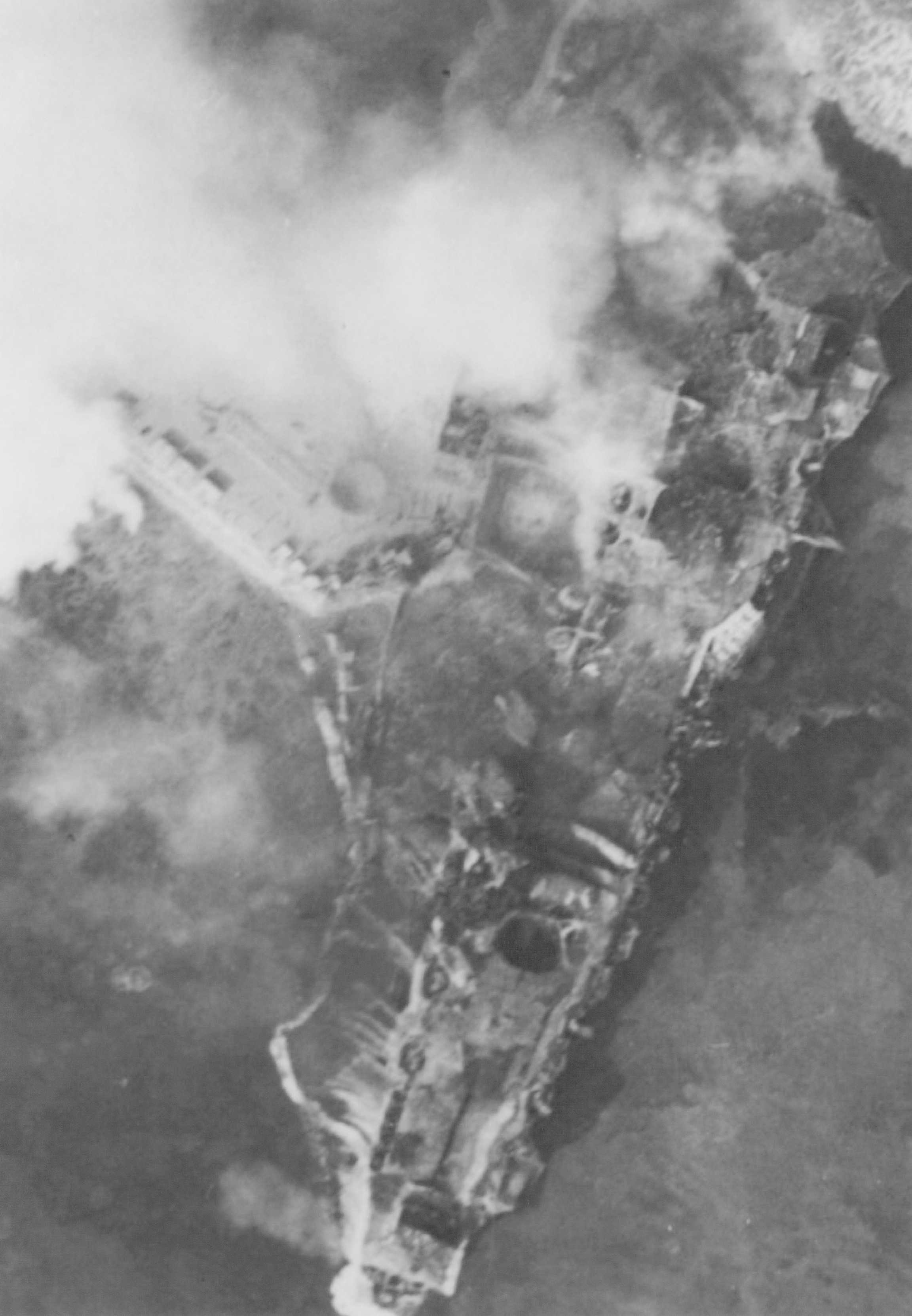三ツ子島(北部に「葛城」、東側に横転した「天城」)