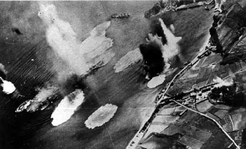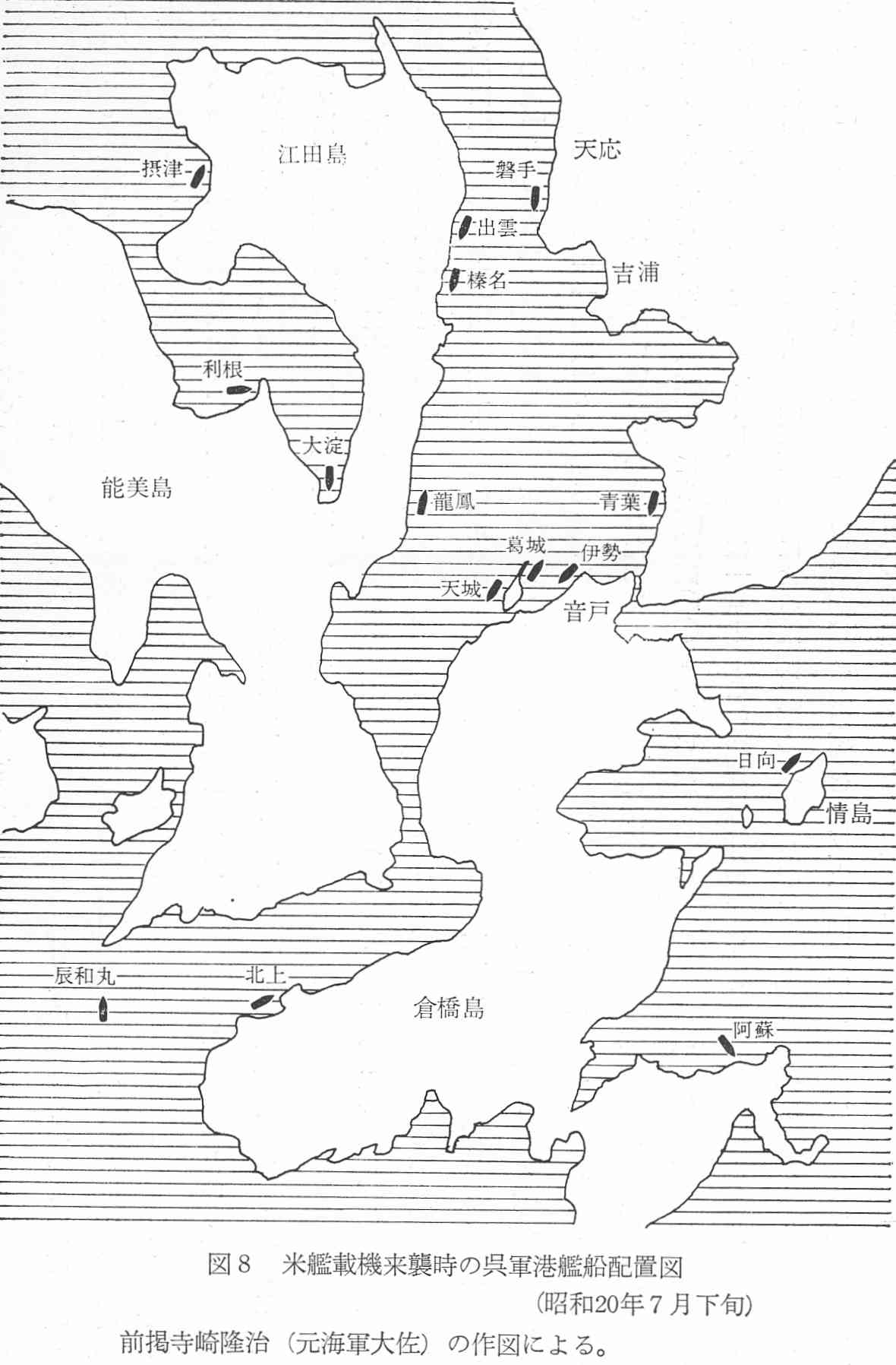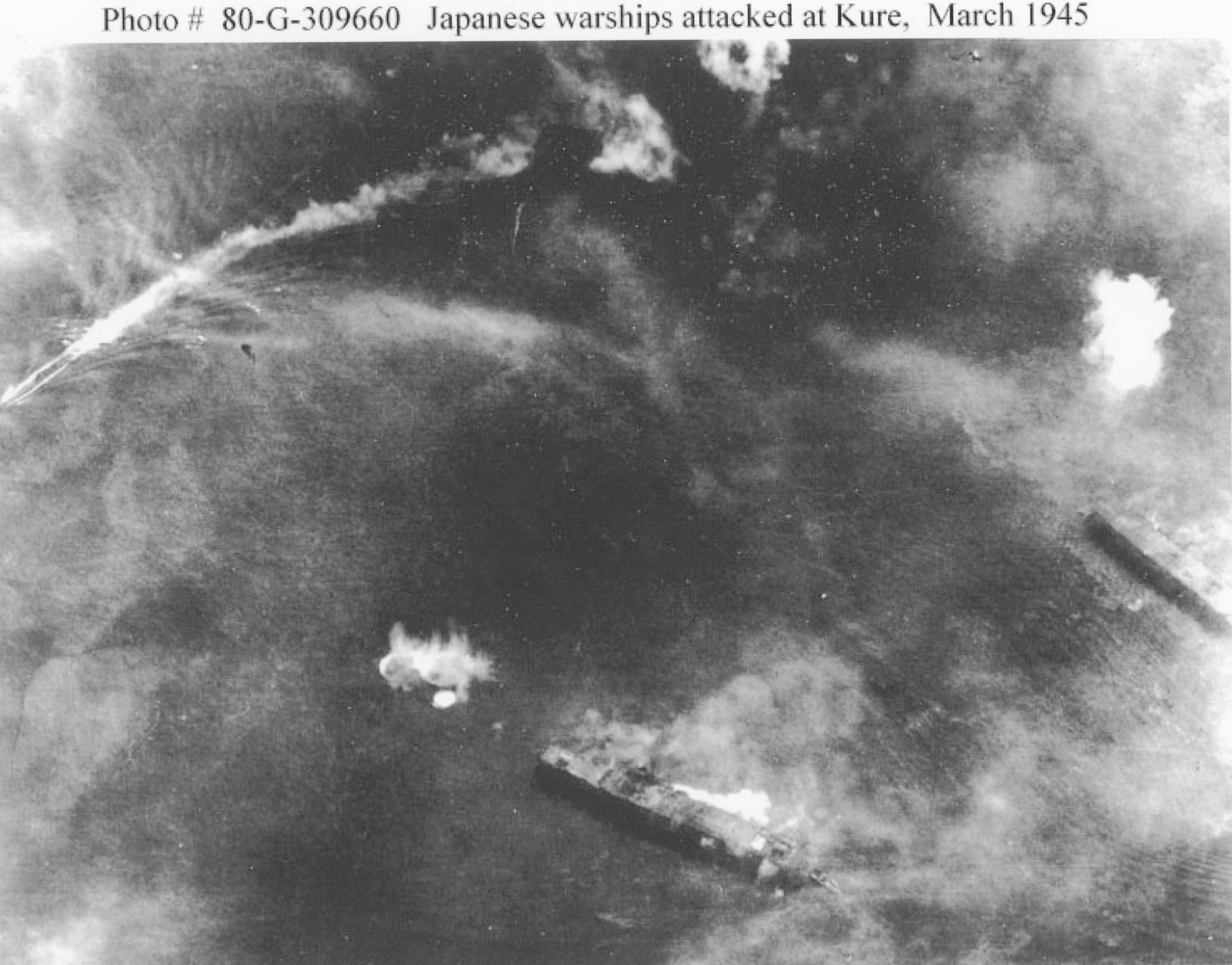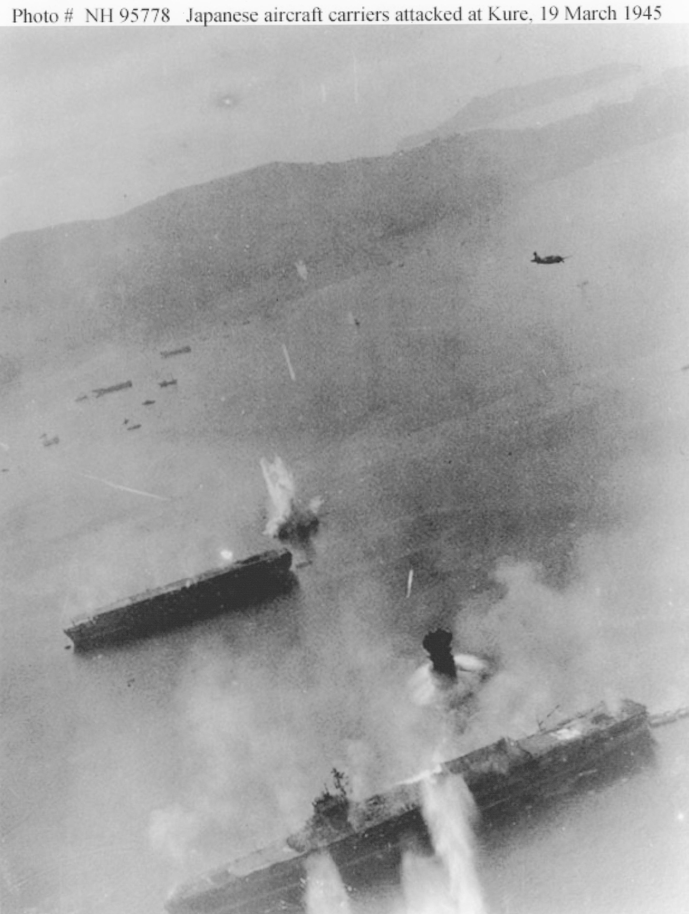 3月19日の空襲によって艦隊行動が不可能になった日本海軍の艦艇は、被害を少なくするために、また燃料不足のせいで呉湾周辺に分散疎開されました。松の木で偽装するなど、ほとんど戦力のなかったこの"日本海軍残存艦隊"を目標として、アメリカ海軍第38機動部隊(第58機動部隊が改称)を中心とする連合軍の大艦隊は、このとき艦載機による集中攻撃をかけたのです。