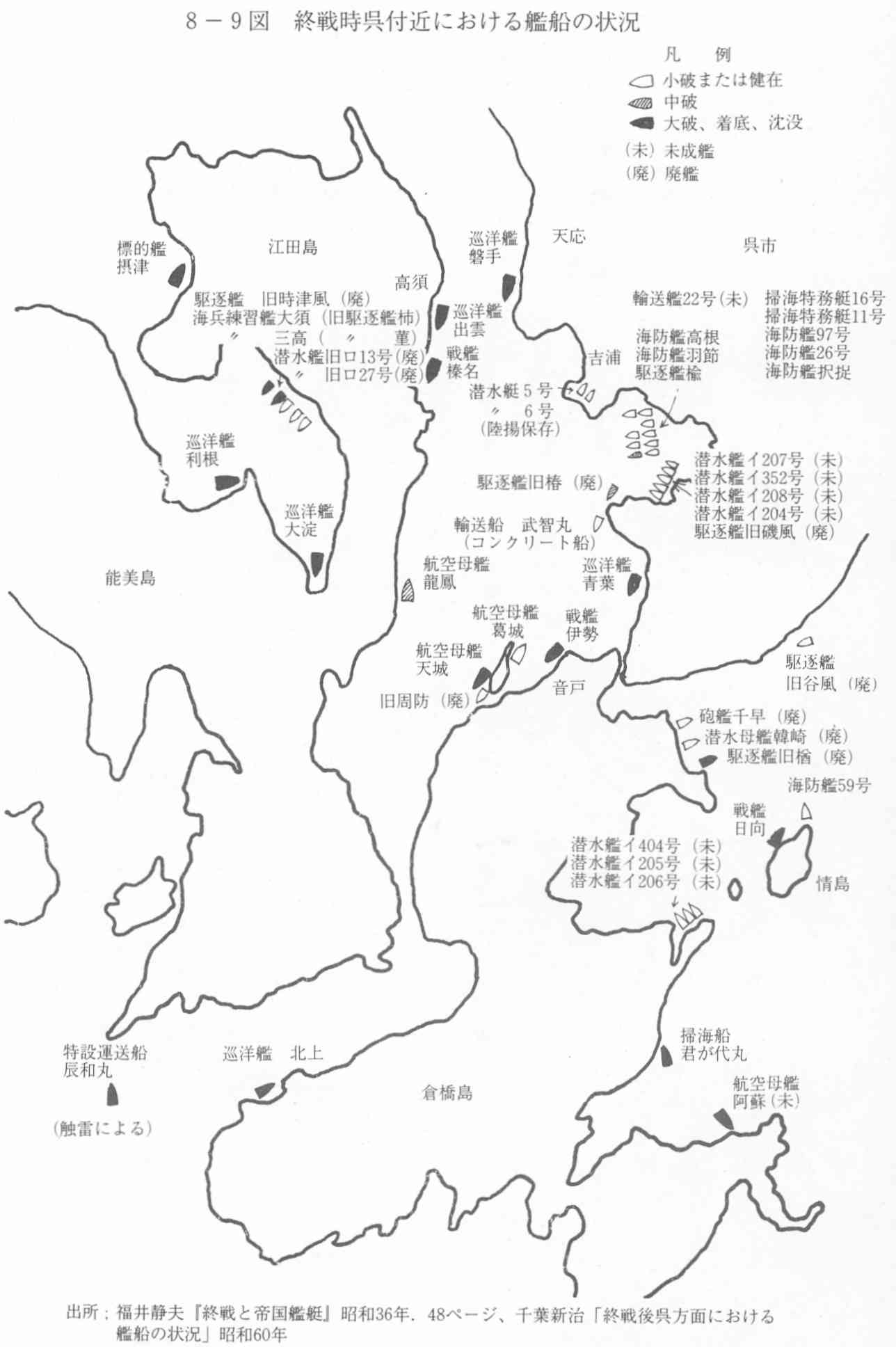 ほとんどの軍艦は乗組員の多数を失って着底し、一般市民に少なくとも120人以上の犠牲をもたらして、世界的軍港・呉は、日本海軍の「墓場」と化しました。
