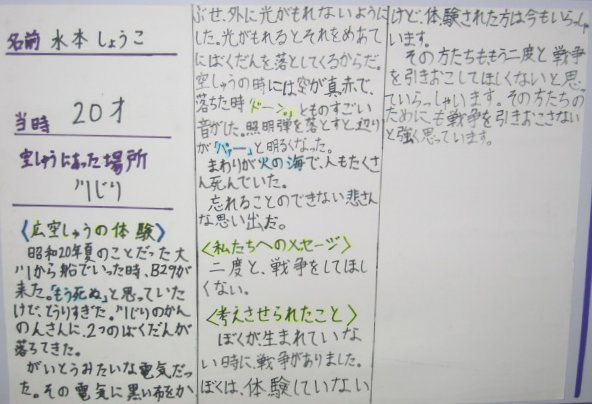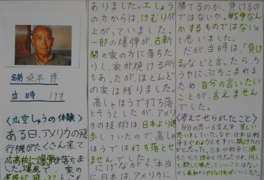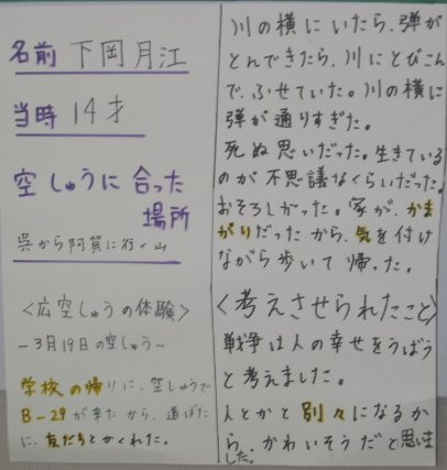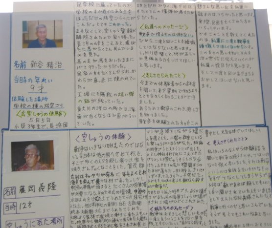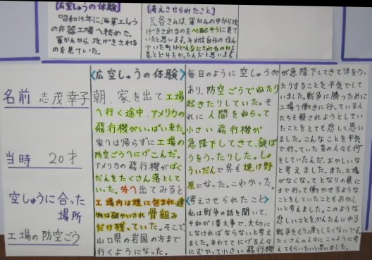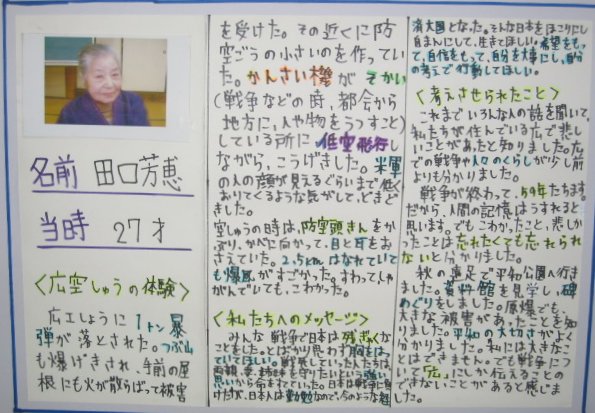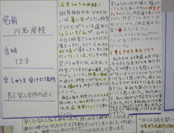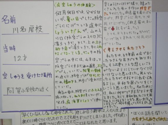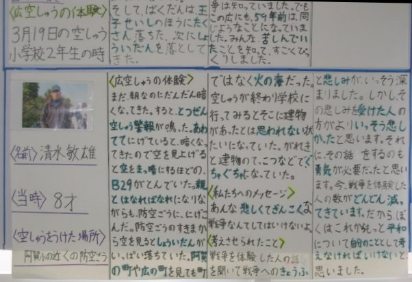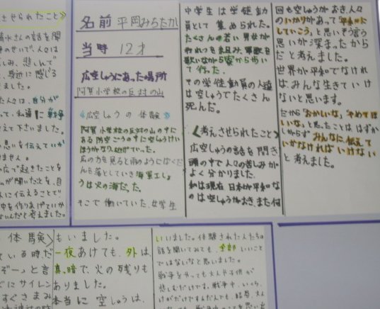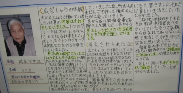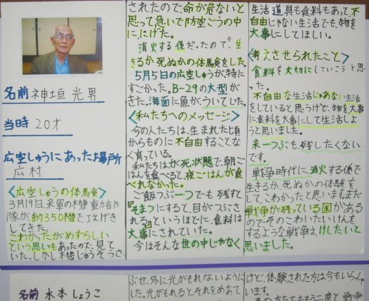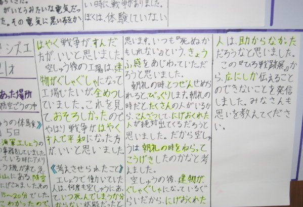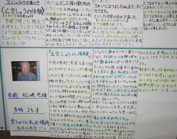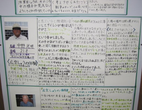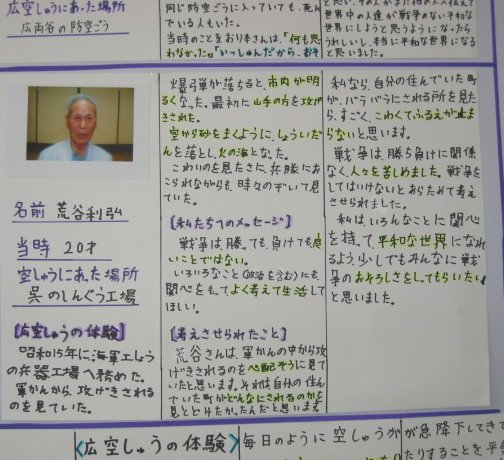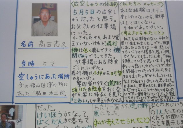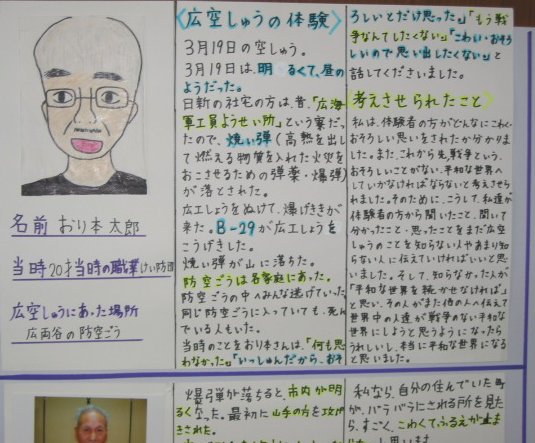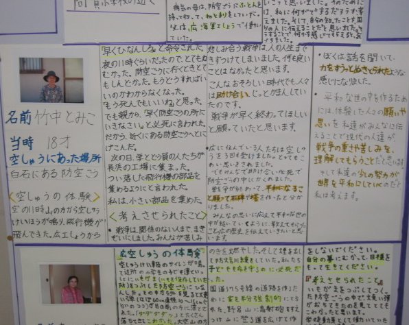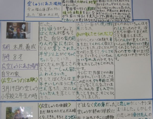 白岳小学校の平和教育(広空襲の学習)「ひろ戦跡展」